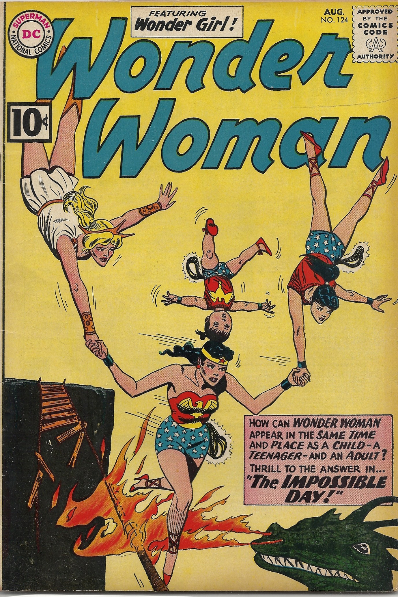 So when I find some WWs, I pick them up if they’re in good shape. Like this one. Plus I kind of liked the cover. I mean, they had her doing everything but spinning plates on the Ed Sullivan Show. Also I didn’t really know what the deal was with “Wonder Tot.” Wonder Girl I thought I was familair with, though I didn’t realize that here she was just a younger version of Wonder Woman, a la Superman and Superboy (not the Connor Kent version). And it turnes out Wonder Tot is an even younger version of Wonder Woman. Okay. I guess I could have picked that up by, oh, I don’t know, reading the cover, but sometimes I’m slow on the uptake.