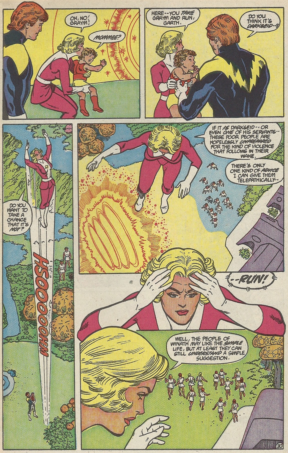 At this time, I found Giffen’s art style far too stylized. In the “Great Darkness Saga”, he was still finding himself or something, and I found his work much more palatable.