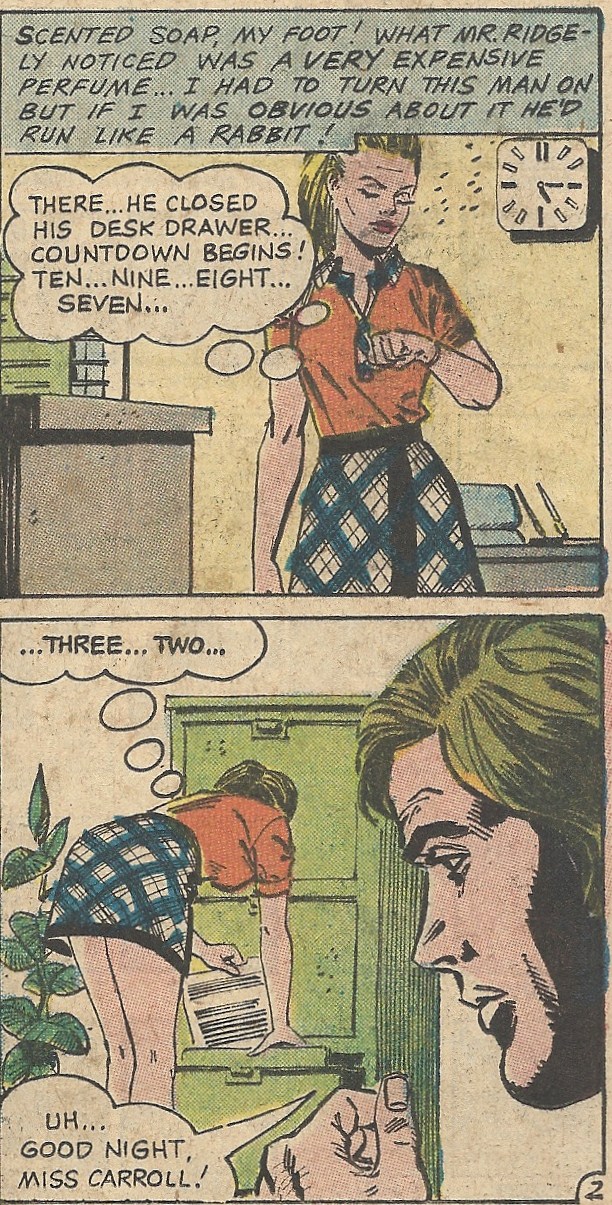 Our last tale is the real gem of the three. Once again from unknown authors, “Who Needs Love” chronicles the efforts of a pretty young secretary to snare an eligible executive: