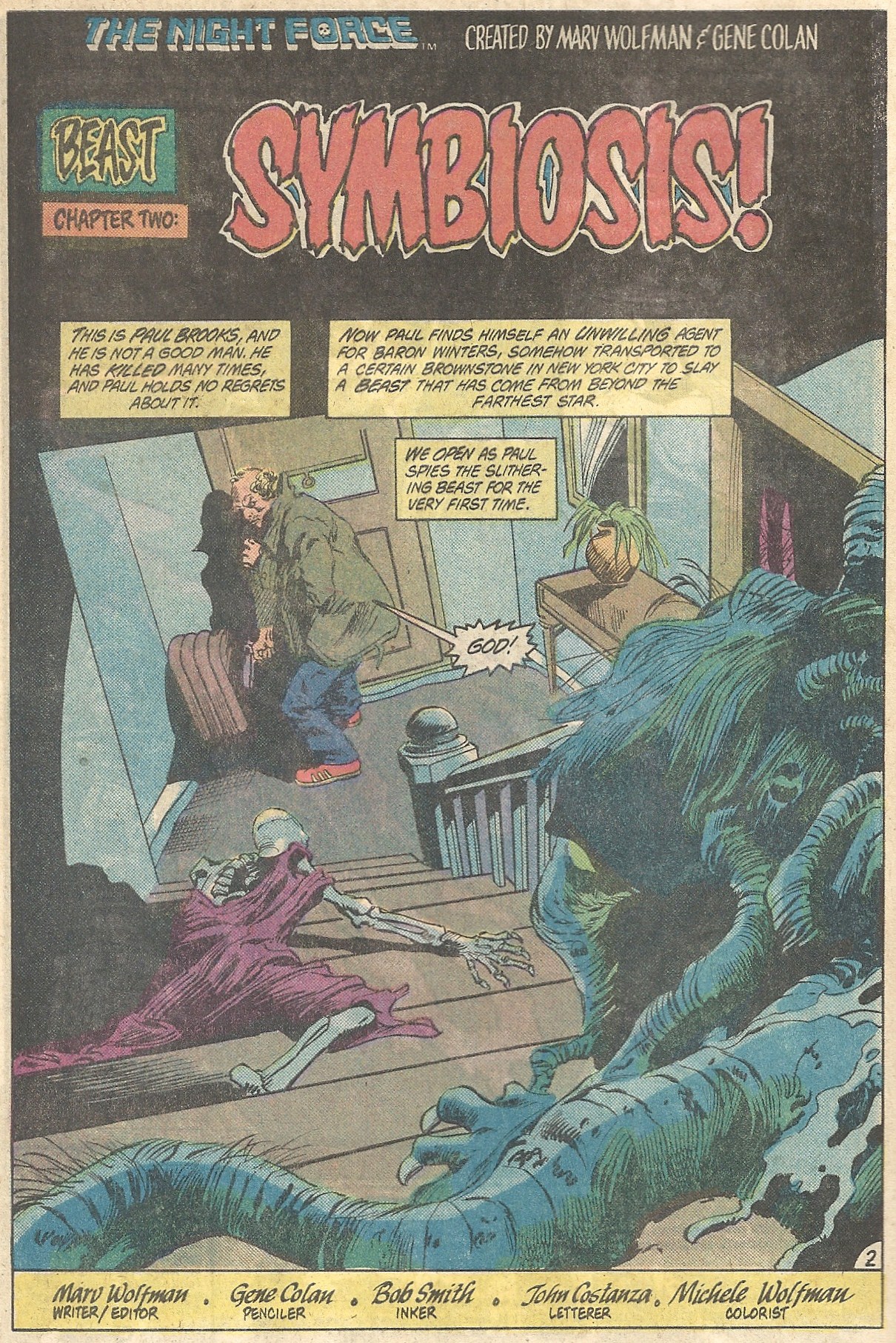 Night Force had a set stable of characters, but they were largely absent from this tale and only appeared in a few panels far away from the action. Instead, in “Symbiosis,” by Marv Wolfman, Gene Colan and Bob Smith, we focus on one man thrown into the midst of unspeakable horror: