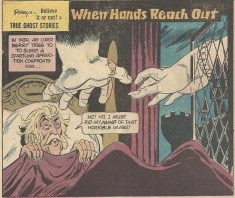 “When Hands Reach Out” is our first story and it’s illustrated by Jack Sparling (I could only find art credits, so that’s what you’ll see for all the stories here). A 15th century nobleman is haunted nightly by phantom hands: