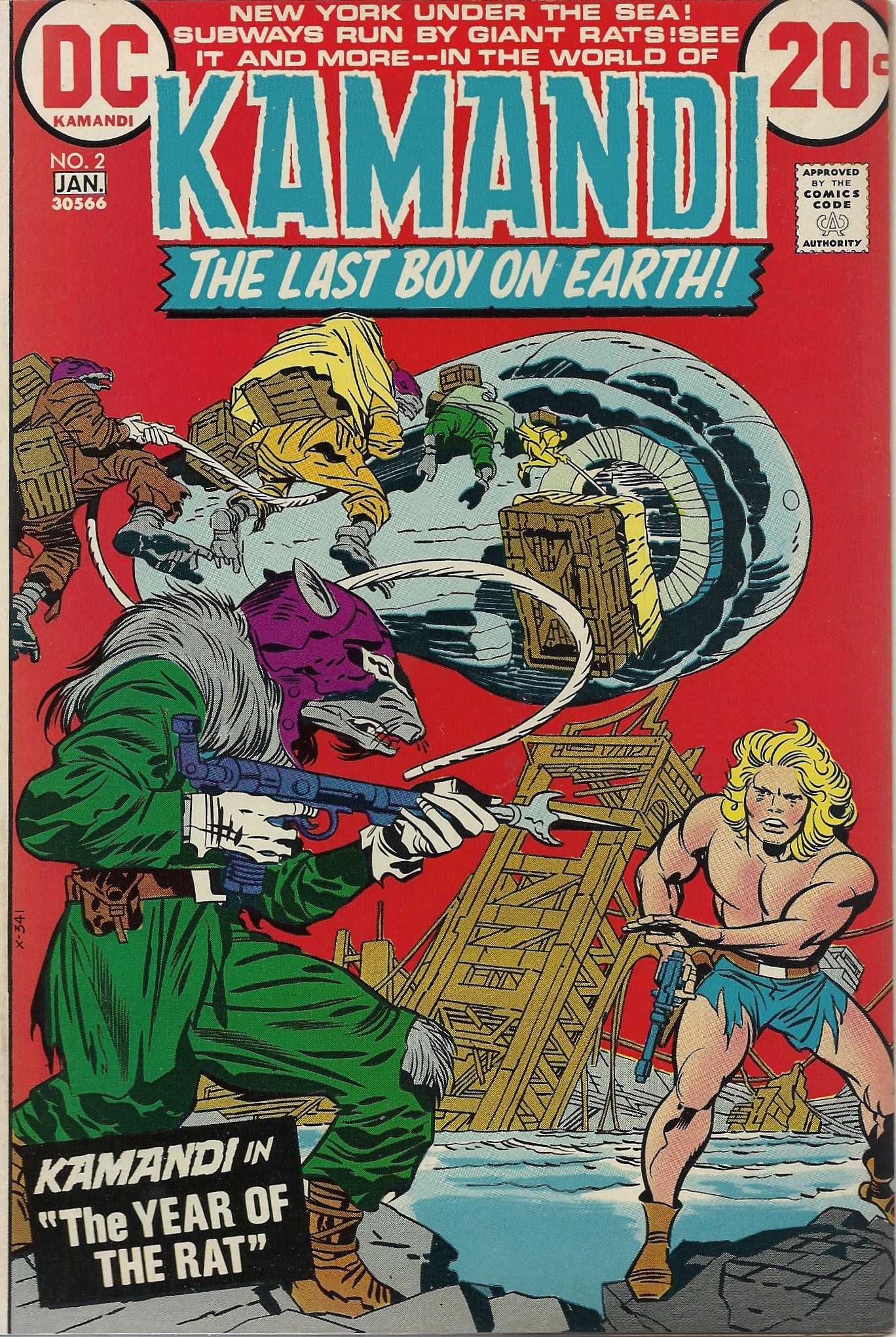 He and Kamandi make their escape from the Tigers (with the help of kindly Doctor Canus) and travel through an underwater New York City: