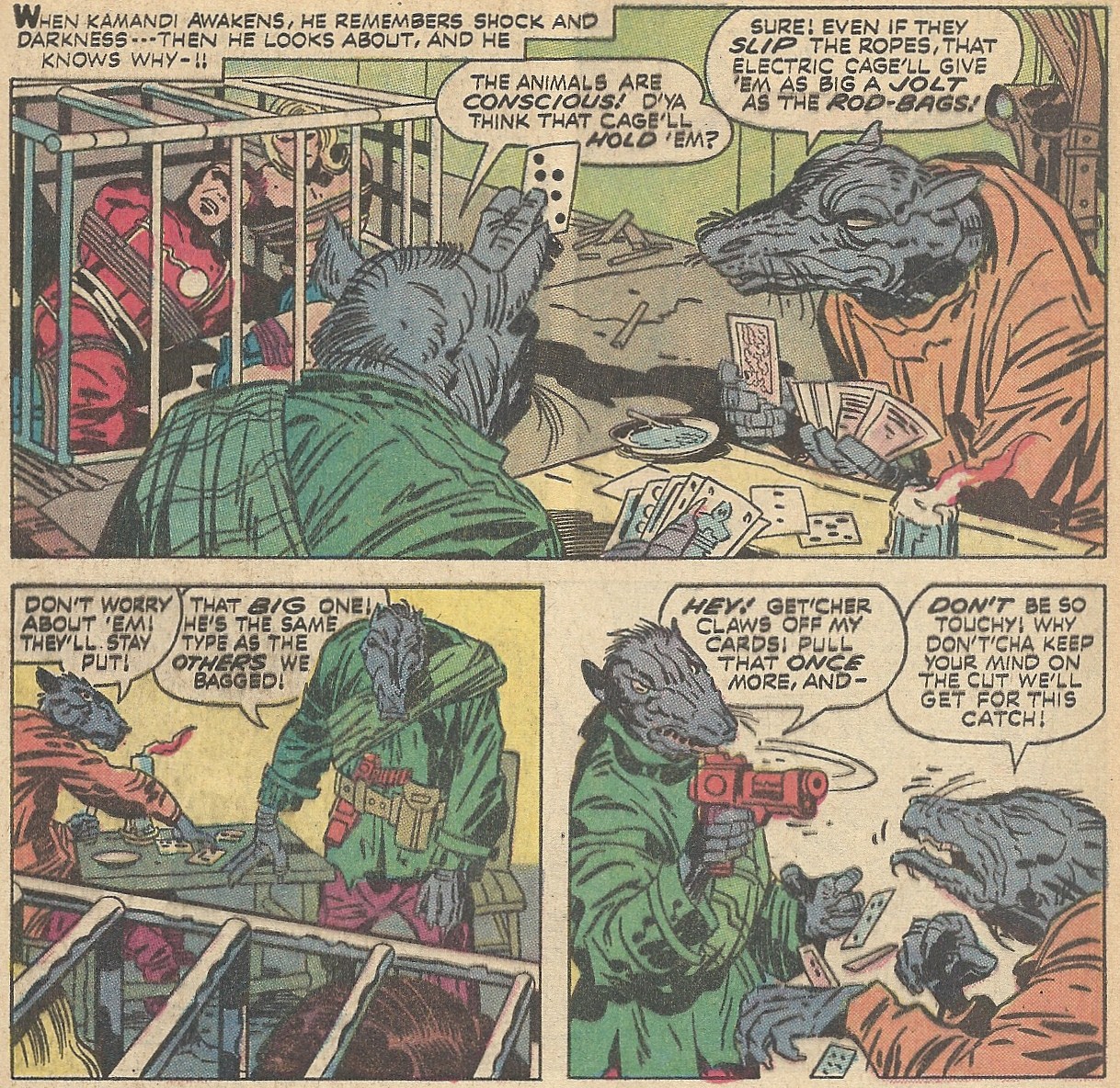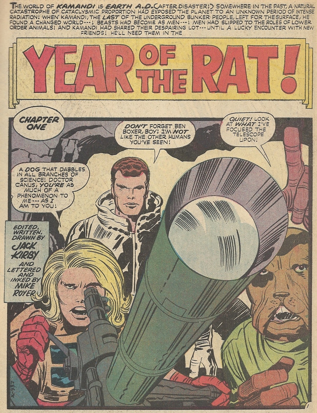 This second chapter of the Kamandi saga is chock full of Kirby goodness (with helpful inks from Mike Royer). In “Year of the Rat!” we early on learn the true nature of Ben Boxer: