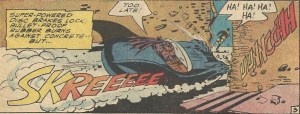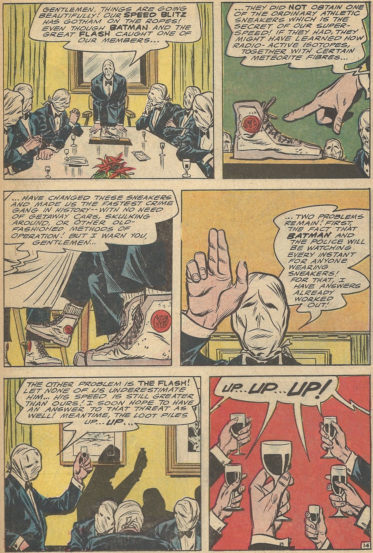 The “Speed Boys” hold a secret meeting where they revel in their villainy and talk about the source of their super-sneakers — meteors, radiation and Chuck Taylors!: