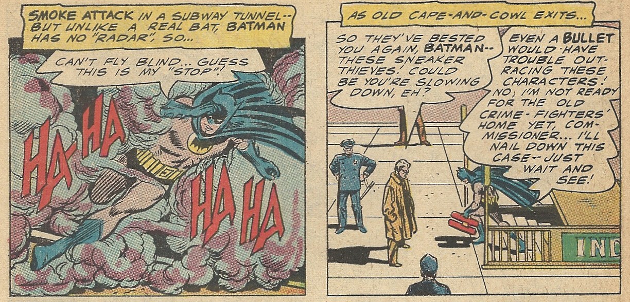 This was a real fun story, mainly thanks to the principal actors and the deft lines of a favorite artist. It was different to see Batman fail miserably with his usually overwhelming technology — his body draped over a flagpole was a highlight (or lowlight, as it were). And whenever radiation finds its way into a Silver Age story, merriment and wackiness ensue.