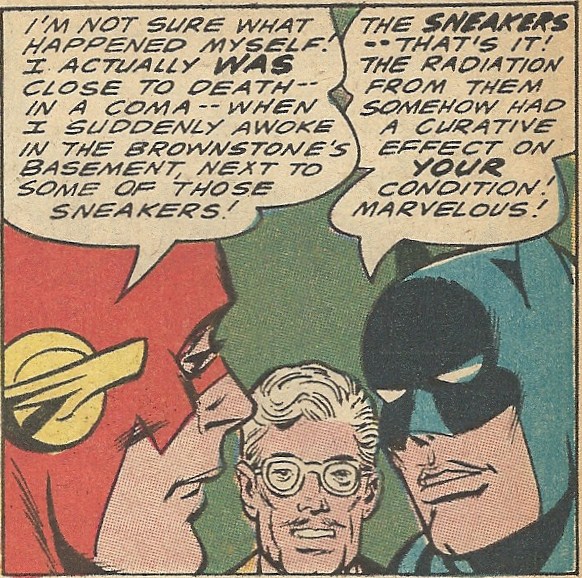 Thank God for radiation, the miracle cure-all of yesteryear. Or maybe it was just that the sneakers’ funk acted as smelling salts. Whatever the case, Flash is once more healthy and all is right with the world.