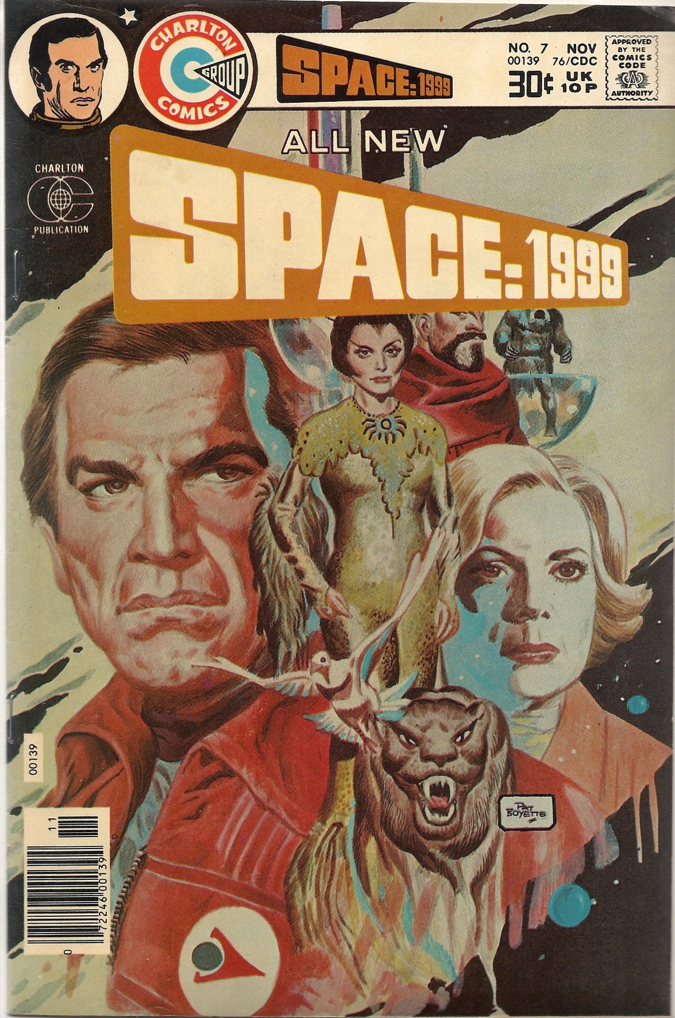 I enjoyed Boyette’s art, as I did on an issue of Korg that I talked about a while back. I especially like his work on the cover, though it doesn’t seem that it was put together with a cover in mind — note how the “Space: 1999” blocks some of the figures. That kind of bugs me.