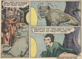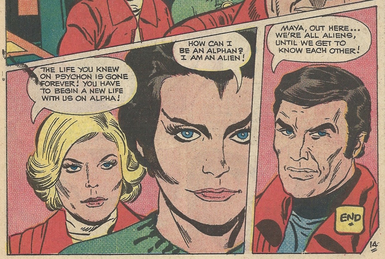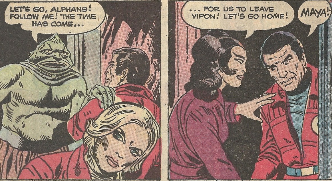 Both stories in this issue are scripted by Mike Pellowski with art from Boyette. The first, “The Metamorph,” is a straight adaptation of the opening episode of the show’s second (and last) season. In that episode and in this issue a metamorph (surprise), Maya, joins the Alphans. Here’s her first appearance: