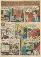 This is a stiff Silver Age PSA that caught my fancy. I managed to dredge up that Jack Schiff wrote it and Sheldon Moldoff drew it — credit where credit is due. Something about the technician’s “Somebody goofed!” made me laugh. Apparently the space program consisted/consists of one guy in a darkened room.