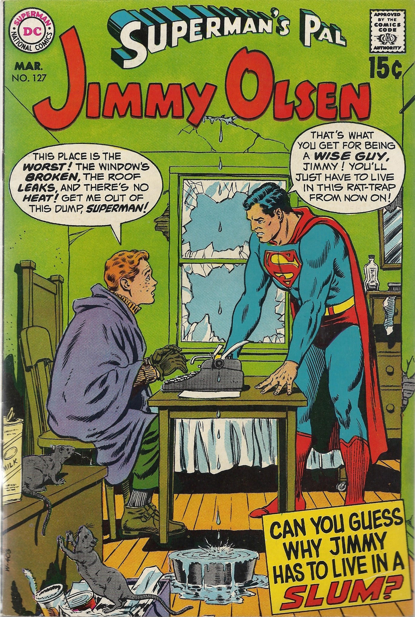 Brought to us by Leo Dorfman, Curt Swan and George Roussos, “The Secret Slumlord of Metropolis!” has Jimmy becoming Metropolis’ version of Jacob Riis and uncovering the squalor of that great cities’ less gleaming districts: