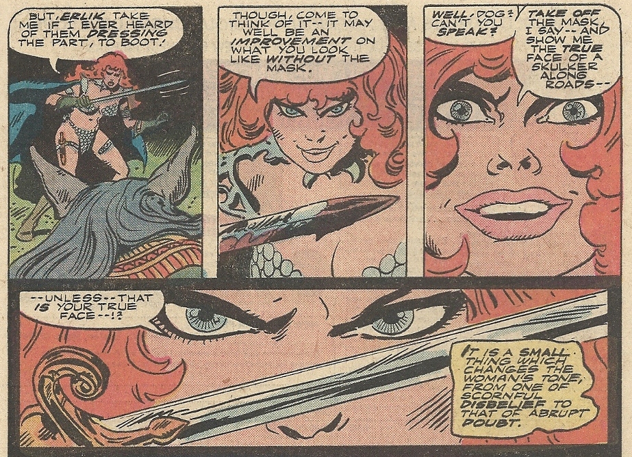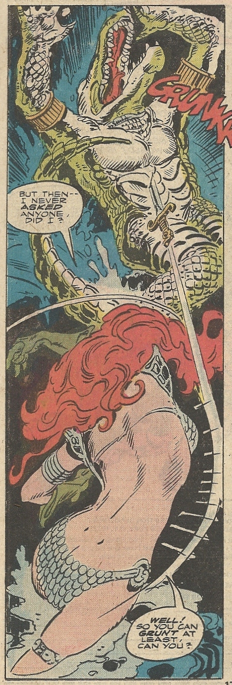 Chainmail bikini? Check. Flowing red hair? Check. Phallic symbol sword in hand? Check. – Marvel Feature #6