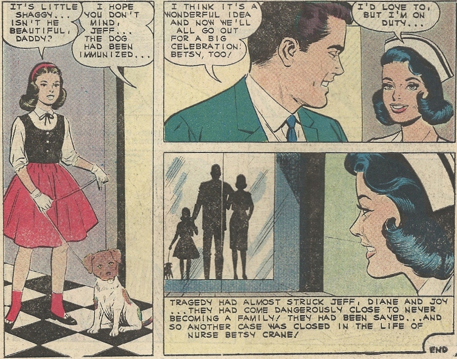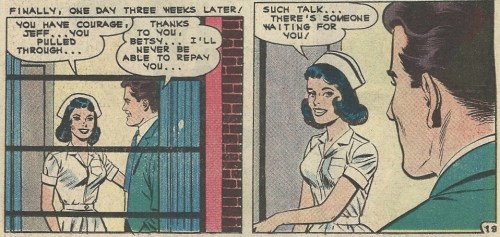 Jeff makes a full recovery thanks to Betsy’s intervention and a doctor’s ministrations, and there’s a hint that he perhaps feels a little too much gratitude towards his nurse savior: