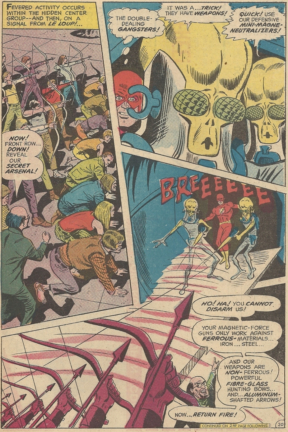Le Loup didn’t count on the Flash, who easily dispatches the arrows and sends all the foul-smelling hippies scurrying like cockroaches.