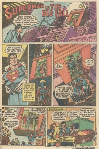 Comics were at one time littered with these ads for cupcakes and fruit pies and Lord knows what else, but for some reason the only ones that get my goat are the Superman ones. I hold him up to a high standard, and he’s too wholesome for this crap. I don’t mind him shilling for milk or something like that, but this? No. At least with milk I can pretend he’s hawking skim. I don’t think there’s any such monster as a “skim” cupcake.