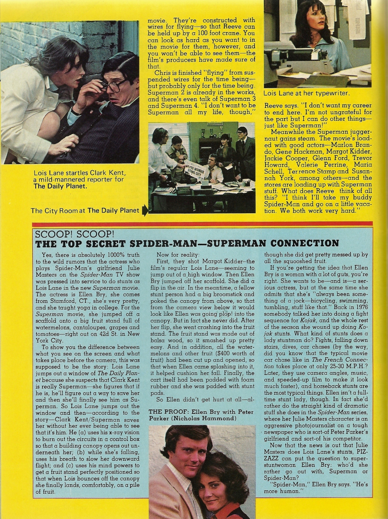 Curious that the stunt scene mentioned in the sidebar was actually shot for Superman II and was never seen until the Richard Donner Cut came out. I remember going to see the first film and wondering where the fruit cart scene was.
