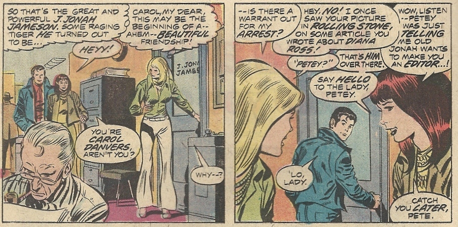 Anyway, Ms. Danvers soon runs into the other two friendly faces from the cover: