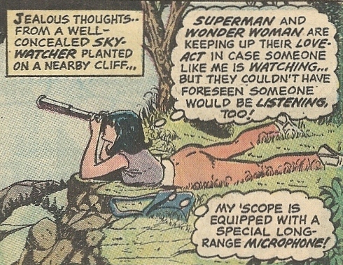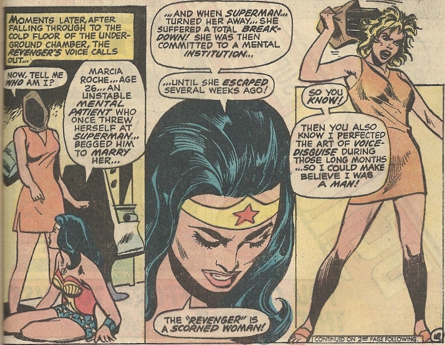 When she later sees Wonder Woman in action, fending off attackers with her arsenal of powers, it’s even clearer how meager her offerings are in comparison. This sets off the typically teary “spurned lover” panels: