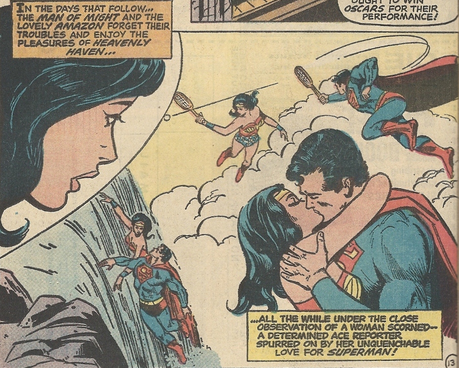 Then we learn that the whole Superman/Wonder Woman thing (they never even had the chance to get an obnoxious “Brangelina”-ish moniker) really was fake: