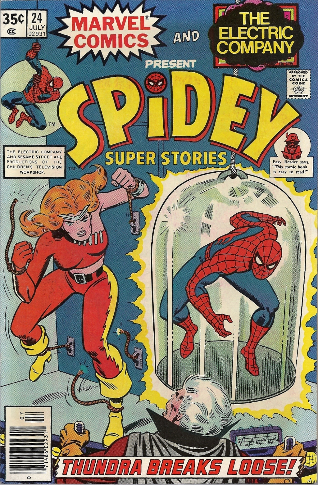 I never knew that there was a tie-in comic to go with the Spider-Man/Electric Company fusion until relatively recently. It’s an interesting series. Most were blessed with Romita covers, and the stories inside were simplified and made kid-friendly. Most older comics — including those back in ’70s — seem relatively kid-friendly, so I’m not sure of the wisdom of making the reading chores simpler. It’s not as if you’ll see words like “quotidian” or “perspicacity” rear their ugly heads in the normal ones. There’s something to be said for helping kids develop their reading skills, but there’s also something to be said for having a higher bar for them to reach for. If there’s one thing I think I know, it’s not to talk down to kids. They can see through that nonsense pretty quick. Talk to them like contemporaries, minus the innuendo and cussing, of course. It seems to work pretty well.