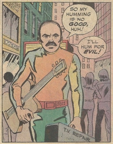 The next story (“Humbugged!”) involves a villain whose main power is — wait for it — humming. Since this one was kind of done on the TV show, in the interests of brevity (and perhaps my sainity), I’ll just give you one panel and an embed: