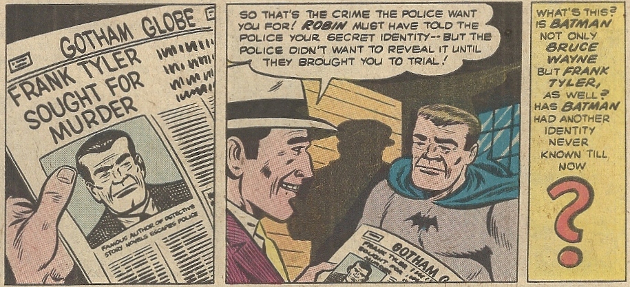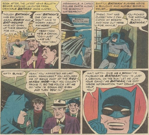 And finally there’s our encounter with (Bat)man’s best friend, in “The Fugitive Batman!” (Script: Bill Finger, Art: Sheldon Moldoff & Stan Kaye):