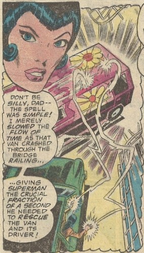 Unbeknownst to Supes, Zatanna, sitting nearby in a car with her pops Zatara, lent a helping hand in the rescue: