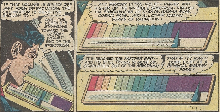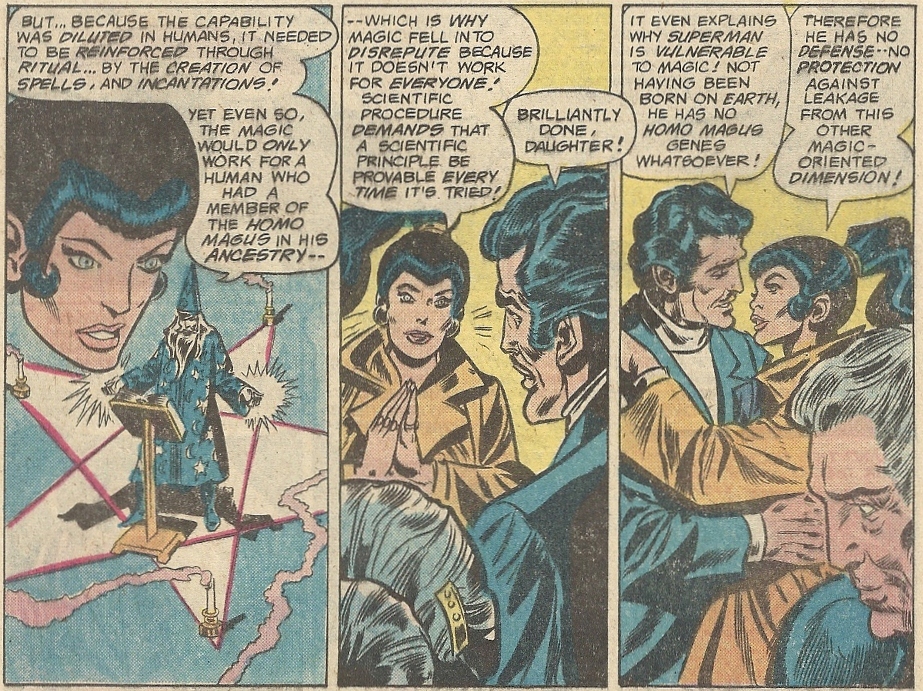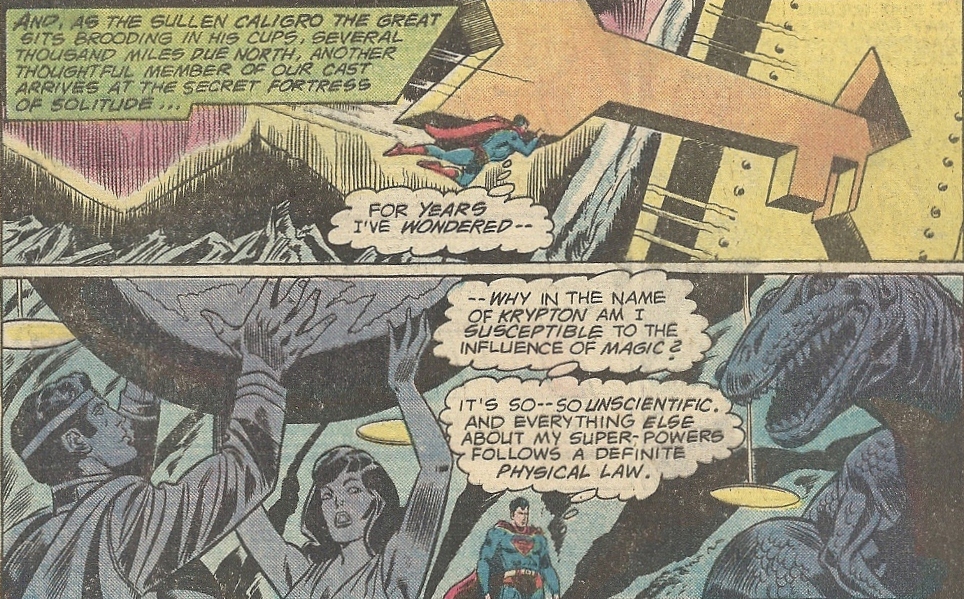 More on him later. Superman heads to the Fortress of Solitude to coincidentally contemplate his one weakness — magic: