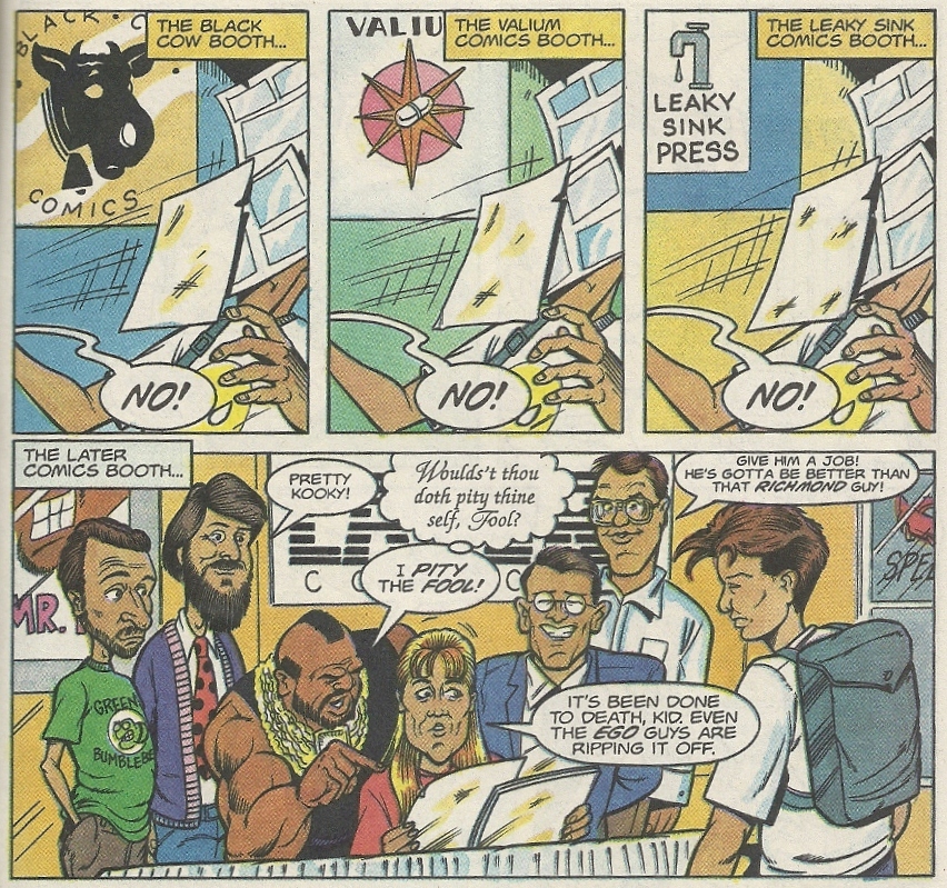 Bud meets with rejection after rejection from every thinly veiled proxy you can imagine, including one for Now Comics, the publisher of this very mag: