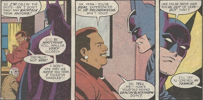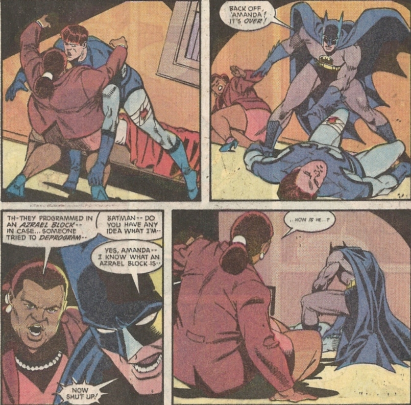Waller gets called in by Oberon and Maxwell Lord for her expertise in de-programming brain-scrambled dudes, though her qualifications don’t cancel out others’ dislike(?) of her: