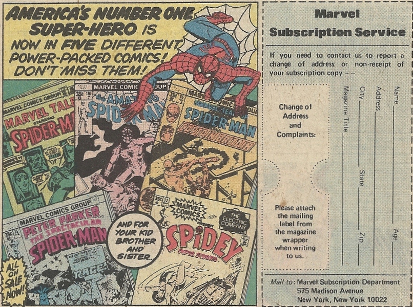 Seeing the titles advertised, it occurs to me that Marvel Tales is the only series that hasn’t received the blogintomystery.com treatment — even the Easy Reader-approved Spidey Super Stories has had some love. Considering the debt of gratitude I owe MT for introducing me in the ’80s to the Ditko/Lee Spider-Man, that’s an omission I shall soon have to rectify. Excelsior!