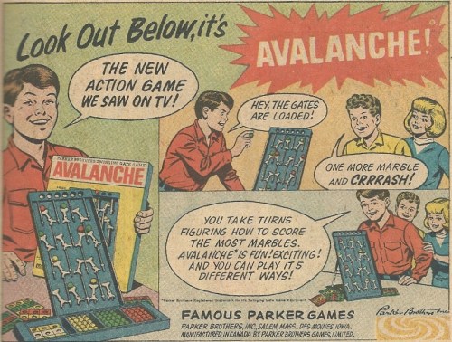 My grandparents’ house had a stash of old board games and toys that were left over from a cousin that was about 15 years older than me. They were like little time capsules of yesteryear’s childhood diversions — a yesteryear that wasn’t all that far away, but a yesteryear nonetheless. I never saw Avalanche in the pile, but it certainly would have fit the pattern.