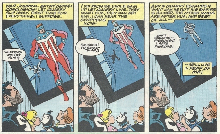 The Punisher affects a disguise to “blend in” with the scene, and manages to activate Miss Grundy’s primal yearnings in the process: