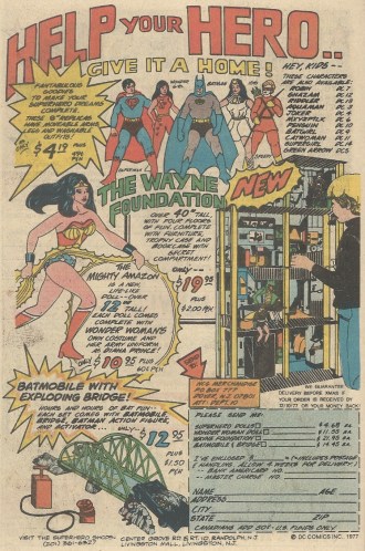 This ad seems to be directed at boys, but there’s a definite girl-toy vibe at play (when seen through the eyes of my generation), despite the TNT and exploding bridge. Removable clothes. A dollhouse. They might as well have included a comb so you could run it through your favorite hero’s hair, My Little Pony-style.