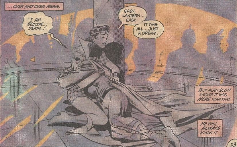 And keep in mind, the Alan Scott Green Lantern has it within him to kill entire nations. Knowledge for life. It turns out Hal Jordan/Parallax was only following in his predecessor’s dreamy footsteps.