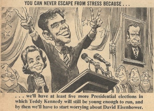 There were also some nice side features in this issue, including a Jack Davis-drawn/Tom Koch-written catalogue of stress-causing stimuli. This one tickled my political funny bone: