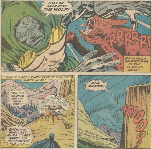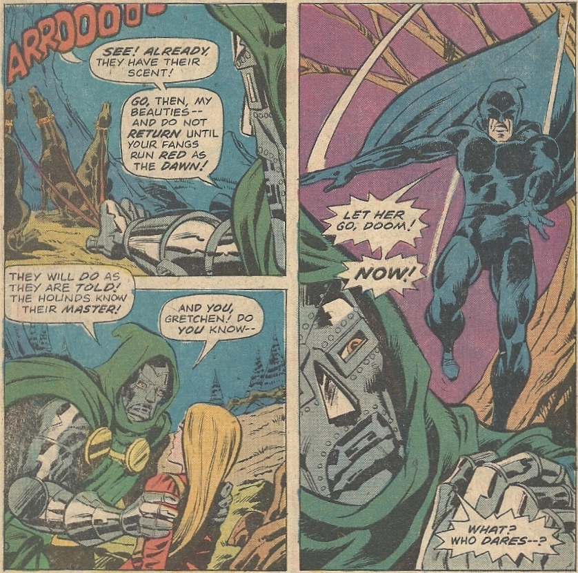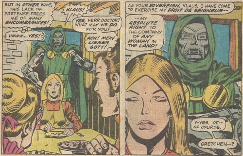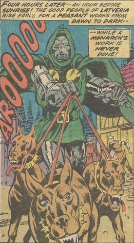 Doom takes Gretchen out on the hunt (nothing loosens up a timid Latverian virgin like the baying of dogs), and as he paws her — but before he can unbolt his cod-piece — there’s a severe case of pre-coitus interruptus: