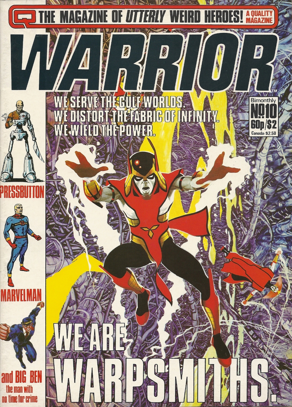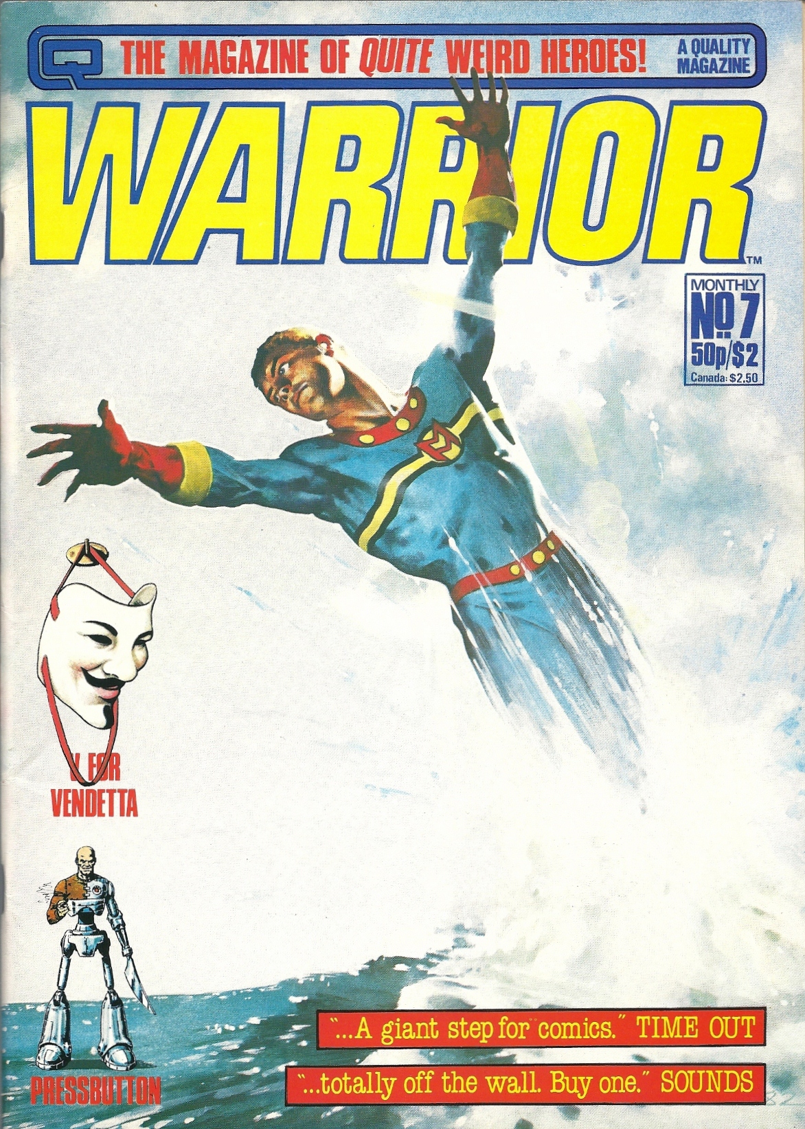 It somehow escaped my notice that Alan Moore’s groundbreaking and career-making work on Marvelman and V for Vendetta ran concurrently in the defunct Warrior mag. I knew that both were first published there, but not that Moore (along with artist partners Alan Davis, Garry Leach and David Lloyd) was firing them off all at once. He was really scattin’ and beboppin’ back then, wasn’t he?