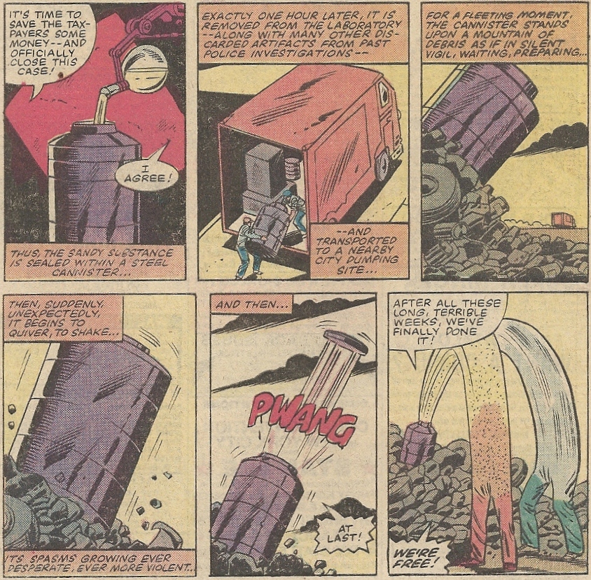 While Ben is playing pack-mule, Flint Marko and Hydro Man separate themselves after their muddy union in The Amazing Spider-Man #217-218 — and after the world’s dumbest scientists dump their radioactive sludge: