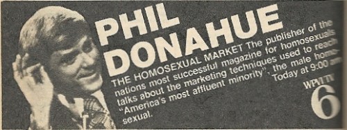I flipped through the rest of this edition. Apart from the expected Welcome Back, Kotter and Barney Miller promos, I found this Phil Donahue blurb to be rather funny: