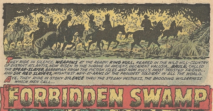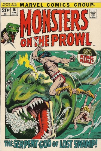 This issue is one of the earliest appearances of Robert E. Howard’s Kull during that character’s 1970s Marvel run (predating an issue from his own series that was examined here). Written by the ever-dependable Roy Thomas, with splendid art from the sister and brother art team of Marie and John Severin, it also contains Kull’s first encounter with that classic Howard bête noire, Thulsa Doom. And along the way he battles lizard-men. There’s a lot going on in here, people.