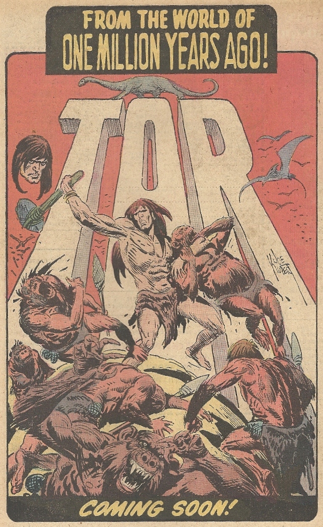 Ignore the questionable anthropology and just enjoy a masterful Joe Kubert composition, including Tor’s name rising up from the primitive muck like the 2001 monolith.