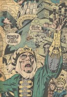 This muscley man with his little red riding hood got his sole trial run in this, the senses-shattering premiere of what should have been called 1st (and Last) Issue Special— not the best track record for launching concepts. And Atlas didn’t exactly help the title put its best foot forward. You could see that Jolly Jack wasn’t firing on all cylinders here, even if there are moments where his usual sweeping grandeur comes out to play. Let’s get some of that positive stuff on the table (if you can’t say something nice…), like this two-page splash (inks by D. Bruce Berry):