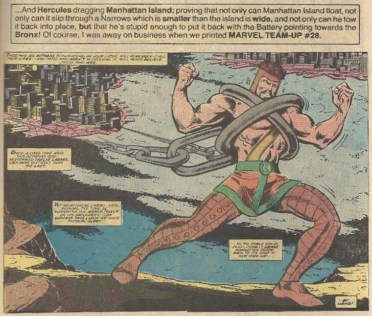 Ha! I have that issue of MTU with Hercules hauling Manhattan. I didn’t buy it at the time, got it a few years ago without realizing it would be one of the worst comics stories I would ever read. Everything about the book shows signs of being rushed to make a deadline–the nonsensical ending is only the shitty icing on the crap cake.