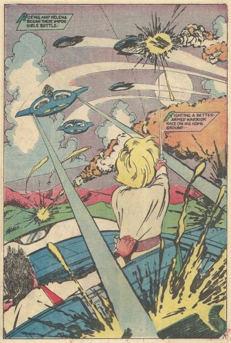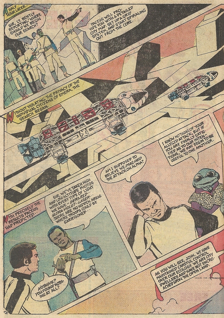 Again, I couldn’t care less about what went on here, but that has more to do with my disdain for a series that was, like other sci-fi kinsmen, incredibly wrong about the course of the near future. Not a big fan, but if you want a comparison with another graphic Space: 1999 tale, one was covered here a while back. Handy. I think you’ll find its characters, though perhaps more closely resembling Martin Landau and the rest of the troupe, were stiffly posed, and that it had none of the verve seen in the above panels. It’s as if Byrne was building with a whole different set of tools.