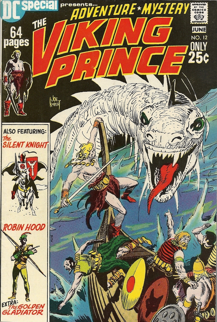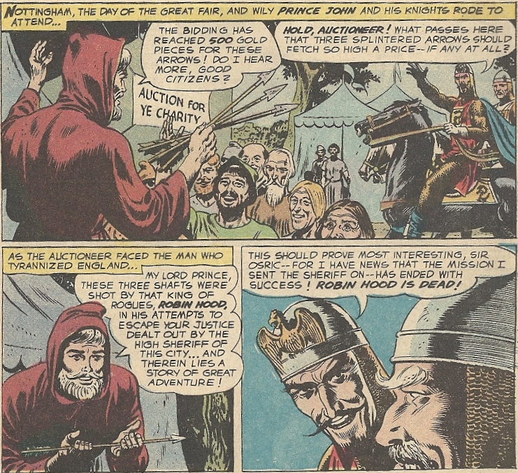 Fair Warning: The Viking Prince, the Silent Knight (ha…) and the Golden Gladiator will not be making appearances in this post. You may commence with the wailing and gnashing of teeth. Be consoled that I was sorely tempted to delve into one of this oversized comic’s three Viking Prince reprints, which featured superb Joe Kubert art from the late 1950s. But I’ve spent time in the past worshipping at that Kubertian altar, and, being a good Anglo-Saxon, I couldn’t pass up a chance to yack about the great hero of my breed, that forest-dwelling, money-bag stealing maid-masher known to us all as Robin Hood. WAIT YOUR TURN, NORDICS.