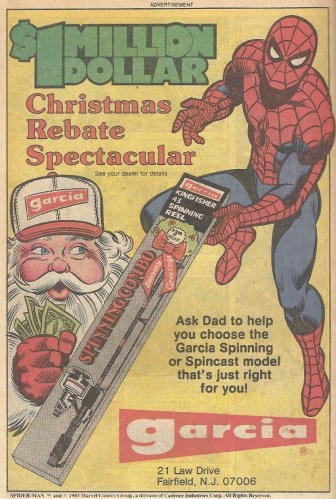 The juxtaposition of Spider-Man with fishing gear may seem like an odd pairing, but it’s one that has been made more than once. Throw in a cash-clenching, poofy-trucker-hat-wearing Santa Claus, and you have — well, I don’t know what you have. Something.