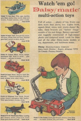 Maybe playing with toy trucks and toy tanks and toy boats and what have you isn’t the childhood joy that it’s cracked up to be. “Daisy/matic: THEY MAKE YOU WANT TO DROWN YOURSELF.”