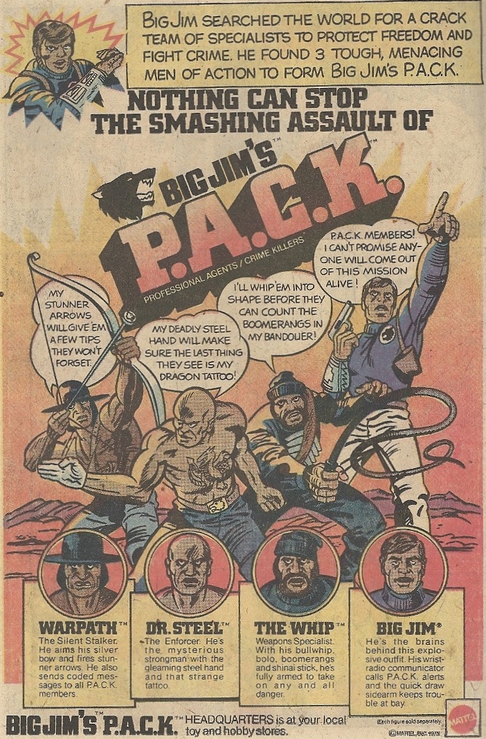 Jack Kirby would like you to get acquainted with Big Jim’s P.A.C.K., which sounds V.E.R.Y. perverse