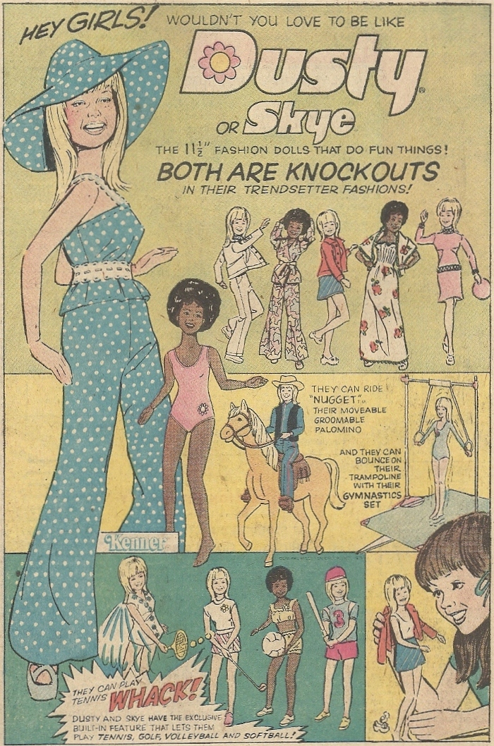 The lily-white Dusty, with her oddly twisted body, of course takes precedence over the black, untwisted Skye