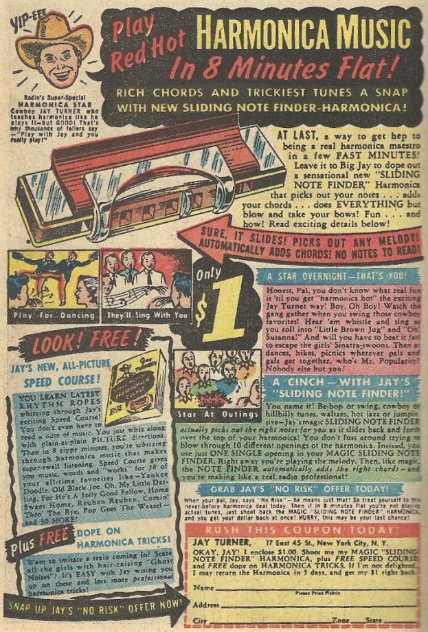 Learn to play the harmonica in eight minutes, never in your life know the touch of a woman